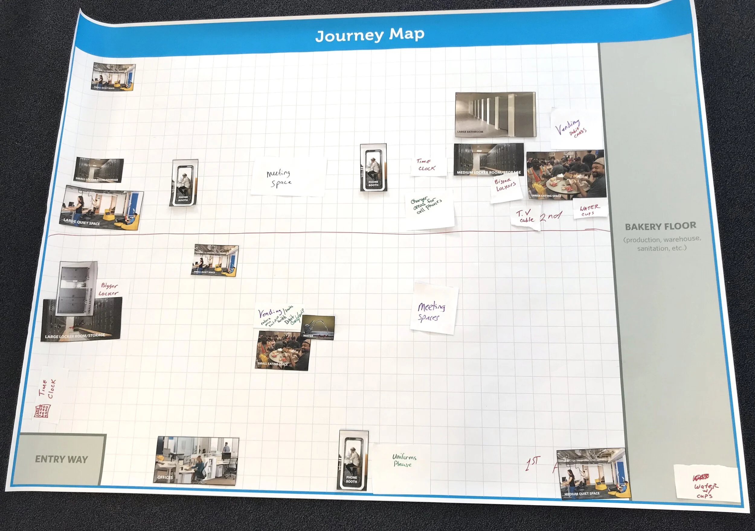 I led a team of 5 researchers in conducting a design thinking process that engaged 250 employees at the manufacturer as well as executive leadership. Because English was not the first language for around two-thirds of the employees, our team worked closely with interpreters to make sure all our materials and workshops were accessible. Based on the recommendations made by my team, the company executed a $5 million dollar renovation and now has a state-of-the-art space as well as greatly increased satisfaction from their employees across the board.