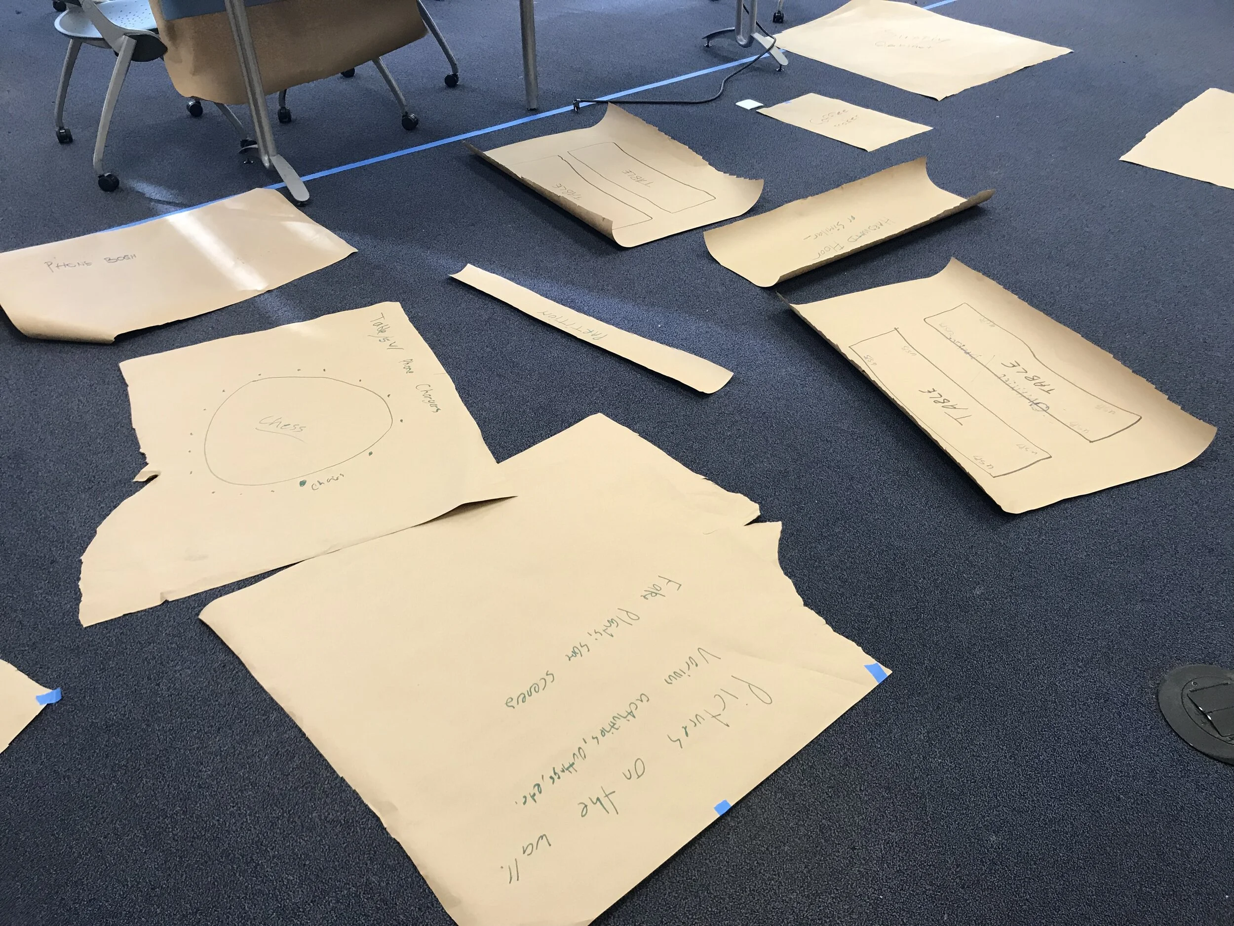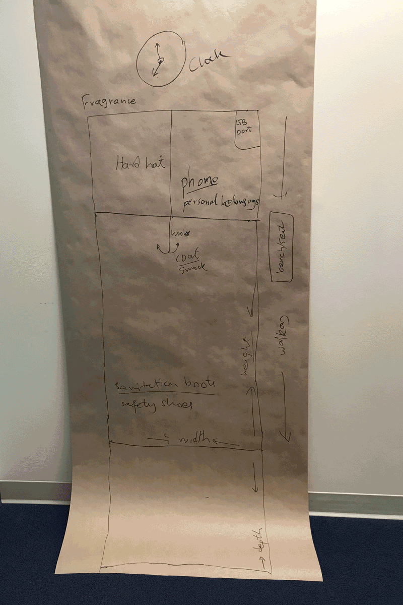 Stakeholders used paper, tape, and Sharpies to imagine their ideal lockers.